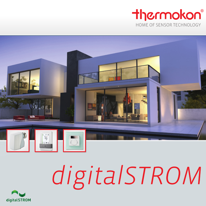 Thermokon oheislaitteet - dSdigitalSTROM – Mitä erilaisimpien sovellusten älykäs verkko ja valvonta: digitalSTROM yhdistää kaikki kotitalouden sähkölaitteet olemassa olevan sähköverkon kautta ja mahdollistaa asumismukavuuden uuden ulottuvuuden. Yksittäisten valojen ohjauksesta energiatehokkuuteen ja turvallisuuteen kotona, ei ole juuri mitään mitä ei voida helposti ja mukavasti ohjata ja automatisoida digitalSTROM järjestelmällä. Kaikki tarvittavat komponentit voidaan asentaa kaikkialle nopeasti ja siististi. Kaikkia sovelluksia voidaan ohjata painikkeilla tai virtuaalisesti PC:llä ja älypuhelimella. digitalSTROM on tulevaisuutta mutta sitä voidaan käyttää jo nyt. Älykäs verkko ja valvonta lämmityksessä ja ilmastoinnissa: Lämmitysjärjestelmän tuotealueen tuotteet mahdollistavat uusia sovellusalueita digitalSTROM älykotiteknologialla. Hallitse ja automatisoi kaikki olennaiset lämmityslaitteiden parametrit yksinkertaisesti oman digitalSTROM järjestelmäsi avulla.